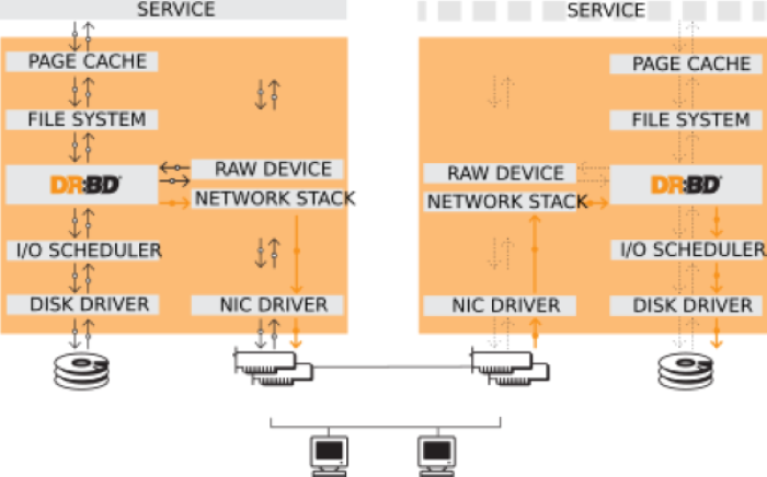 基于 DRBD 的高可用性方案架构如下图所示: