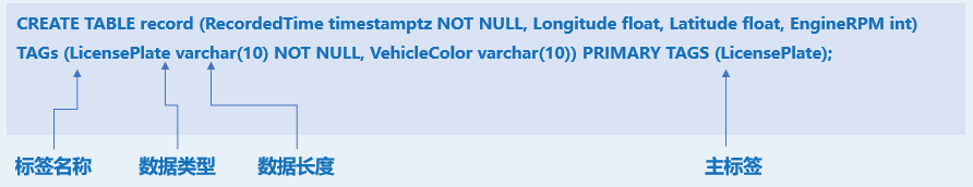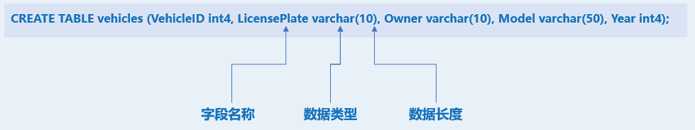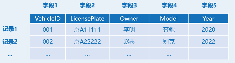 字段:每个字段包括两个属性:字段名称和数据类型。字段名称和数据类型需要在建表时指定,部分数据类型支持限制数据长度。