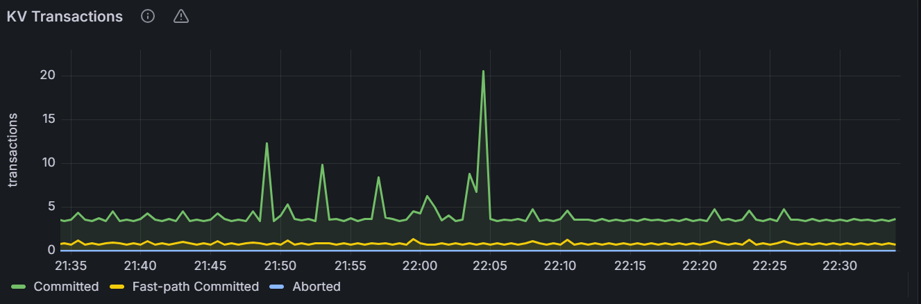 该时间序列图展示指定节点或者集群内所有节点的 KV 事务数。