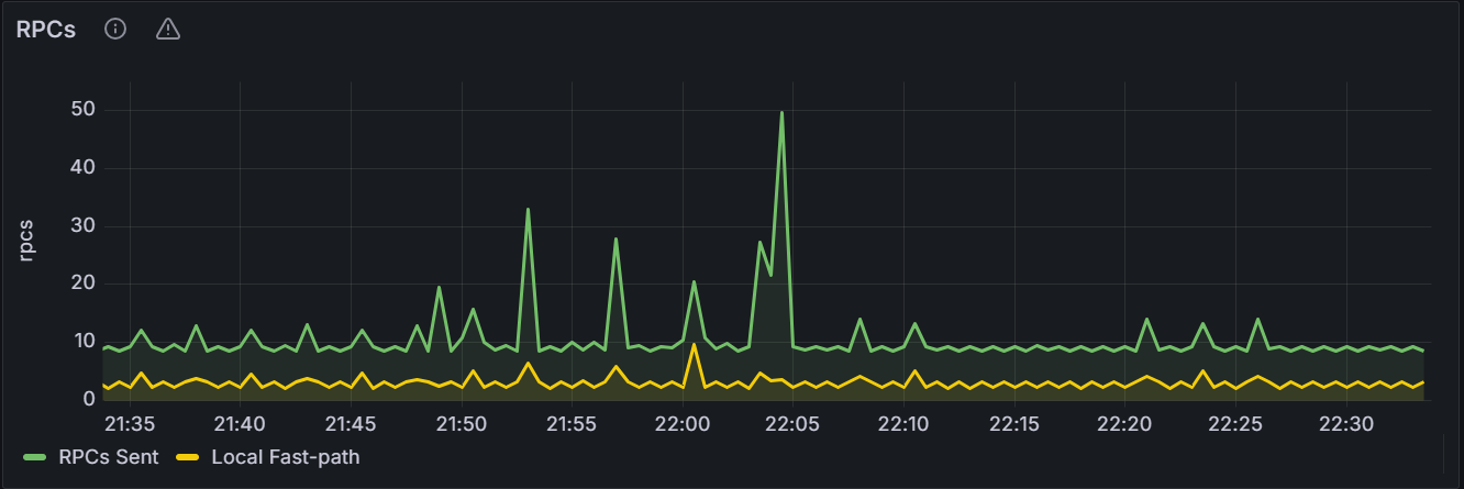 该时间序列图展示指定节点或者集群内所有节点的 RPC(Remote Procedure Call,远程过程调用)数目。