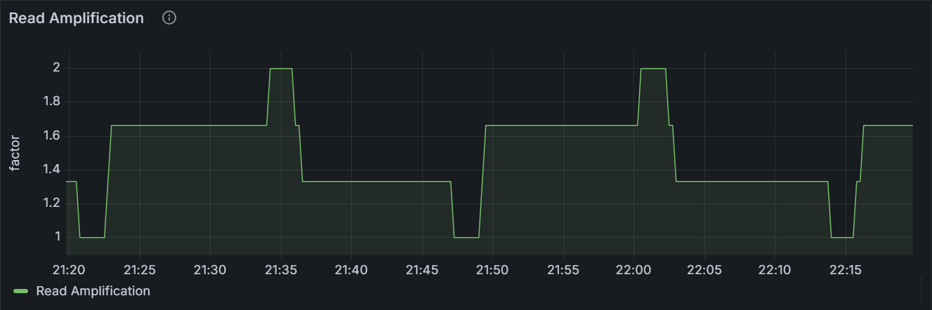 在节点视图中,该时间序列图展示指定节点 RocksDB 读放大统计。在集群视图中,该时间序列图展示集群中所有节点 RocksDB 读放大统计总和。
