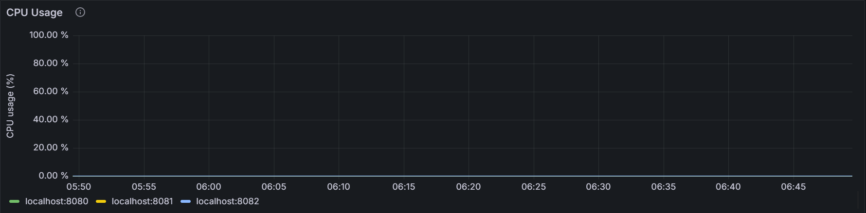该时间序列图展示指定节点或者集群内所有节点上 KaiwuDB 进程的 CPU 使用率。