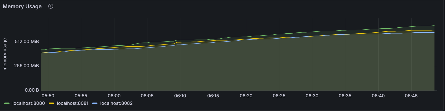 该时间序列图展示指定节点或者集群内所有节点的内存使用量。