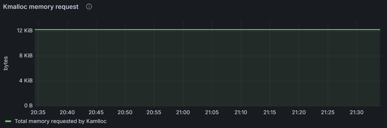 该时间序列图展示指定节点的 Kmalloc 内存申请量或者集群内所有节点的内存申请总量。