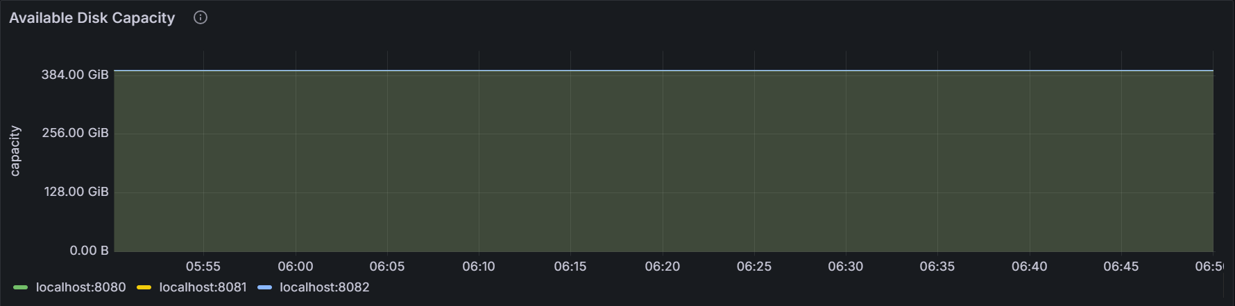 该时间序列图展示指定节点或者集群内所有节点可用的存储容量。