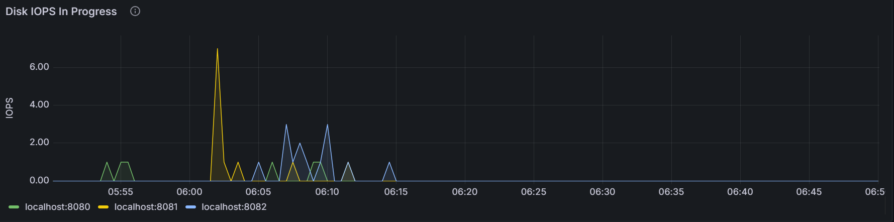 该时间序列图展示指定节点或者集群内所有节点每秒 RocksDB 压缩和写入硬盘的数目。