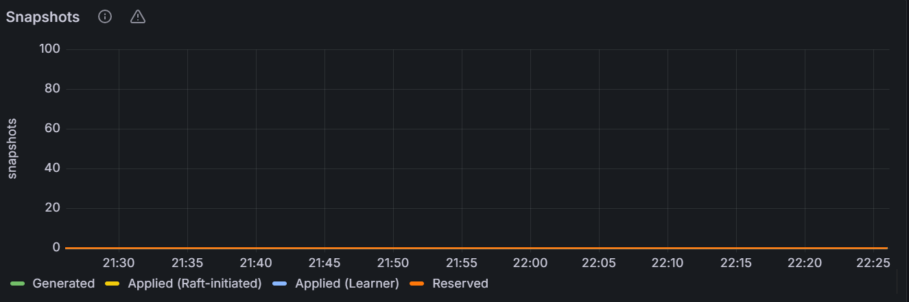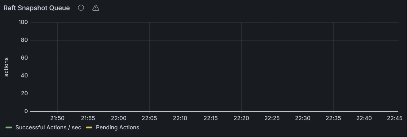 在节点视图中,该时间序列图展示指定节点的 Raft 快照队列数目。在集群视图中,该时间序列图展示集群中所有节点 Raft 快照队列数目总和。