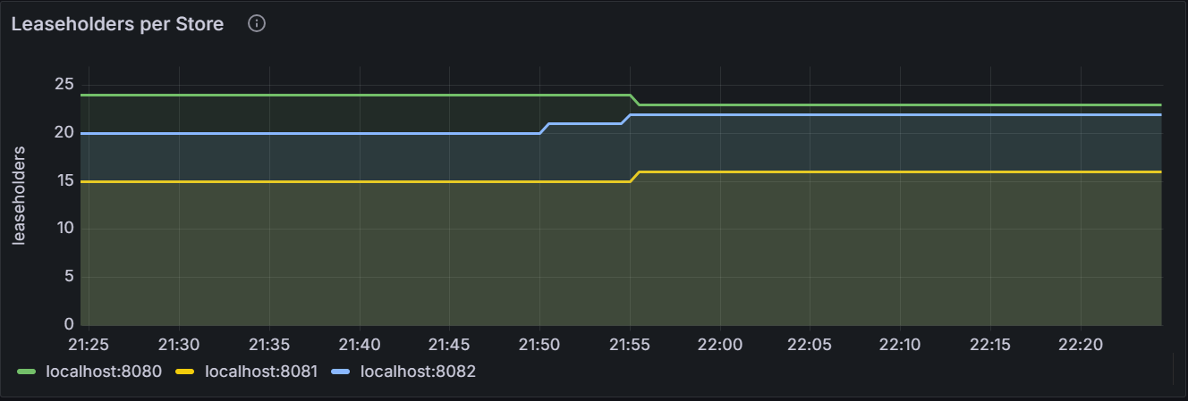 该时间序列图展示指定节点或者集群内所有节点的每个 Store 的租赁副本数。