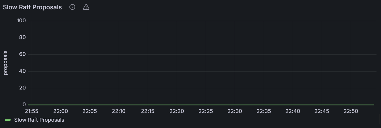 在节点视图和集群视图中,该时间序列图展示集群中所有节点 Raft 中提案提交变缓的请求数。