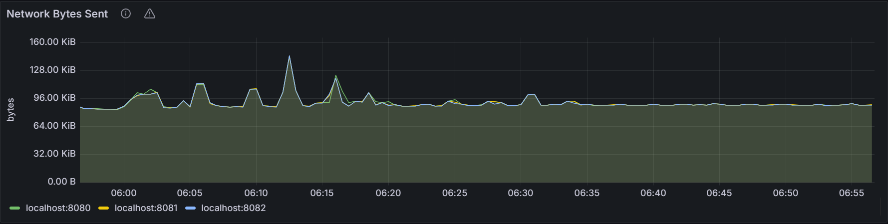 在节点视图中,该时间序列图展示指定节点每秒 metrics 监控数据写入的字节数。在集群视图中,该时间序列图展示集群中所有节点每秒 metrics 监控数据写入的字节数总和。