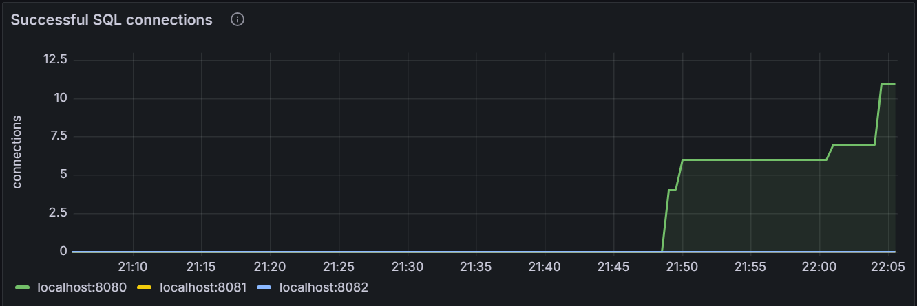 该时间序列图展示指定节点或者集群内所有节点的瞬时 SQL 连接数, 包括成功建立的连接和因密码错误或超过最大连接数等原因未能建立的连接。