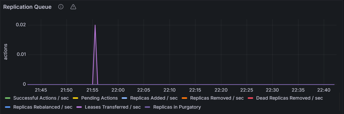 在节点视图中,该时间序列图展示指定节点的副本队列数目。在集群视图中,该时间序列图展示集群中所有节点的副本队列数目总和。