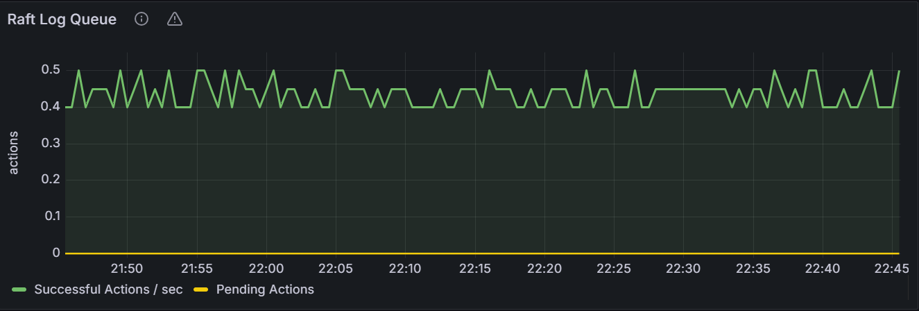 在节点视图中,该时间序列图展示指定节点的 Raft 日志队列数目。在集群视图中,该时间序列图展示集群中所有节点 Raft 日志队列数目总和。