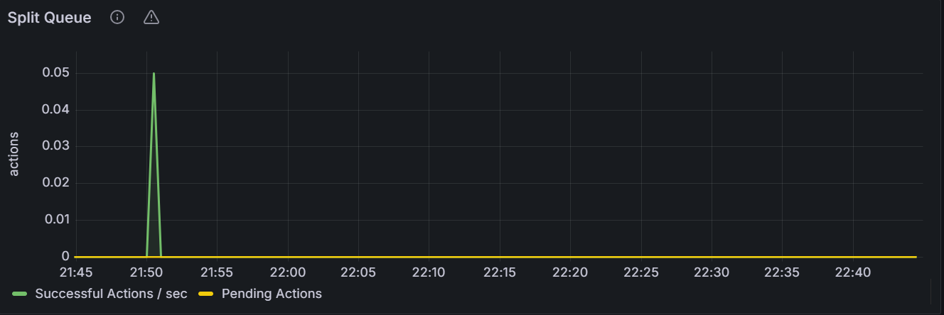 在节点视图中,该时间序列图展示指定节点的分割队列数目。在集群视图中,该时间序列图展示集群中所有节点分割队列数目总和。