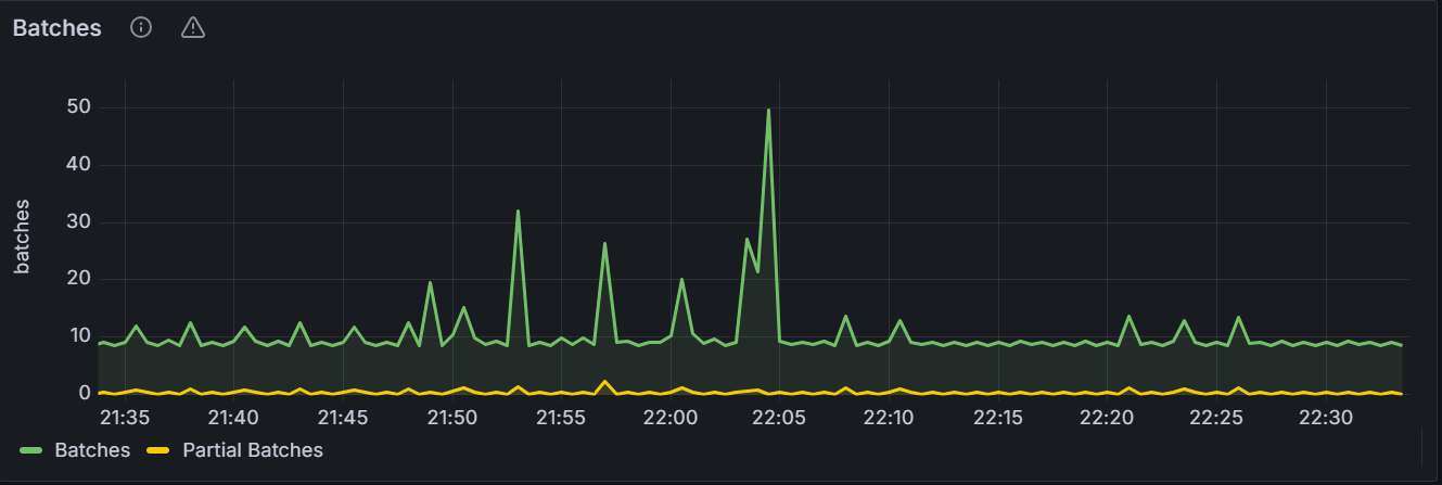 该时间序列图展示指定节点或者集群内所有节点的 Batch 数目。