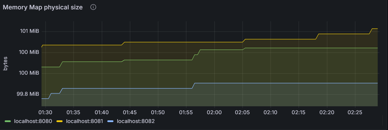 该时间序列图展示指定节点占用的 Memory Map 物理内存量或者集群内所有节点占用的 Memory Map 物理内存总量。