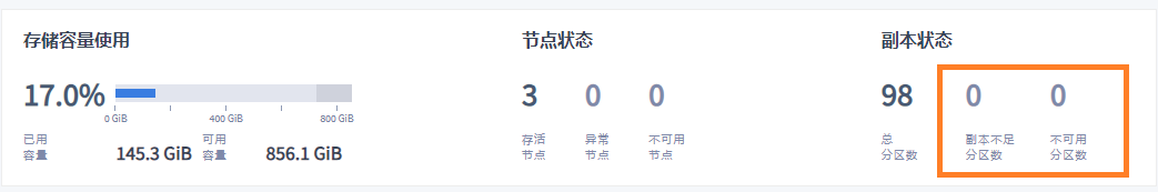 SELECT sum((metrics->>'ranges.unavailable')::DECIMAL)::INT AS ranges_unavailable, sum((metrics->>'ranges.underreplicated')::DECIMAL)::INT As ranges_underreplicated FROM kwdb_internal.kv_store_status;