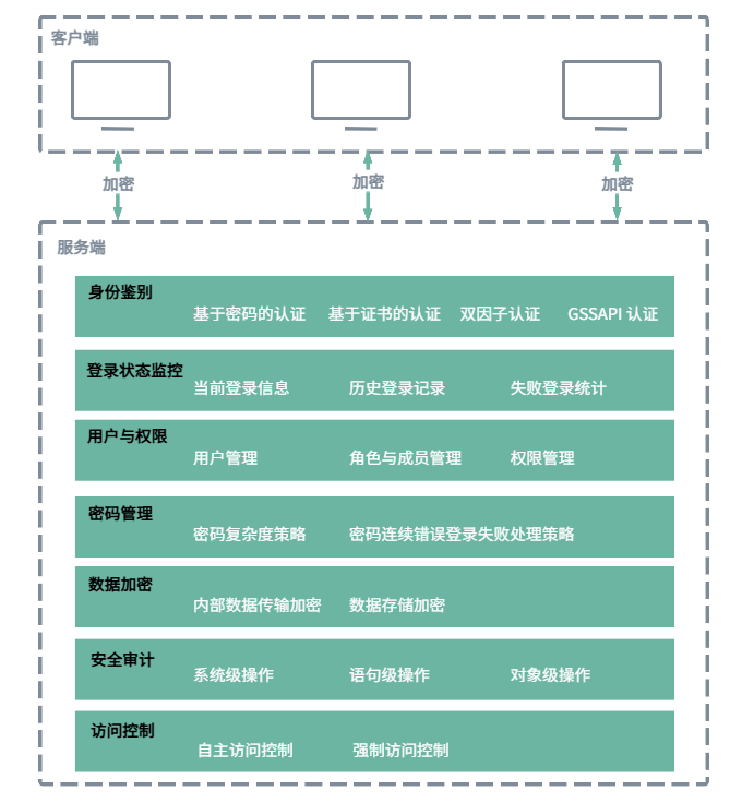 KaiwuDB 提供了一系列的安全功能,确保用户数据的保密性、完整性和可用性。