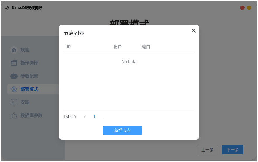 在新增节点对话框中,设置节点 IP 地址、SSH 用户和端口。建议配置 SSH 免密登录以简化部署流程。