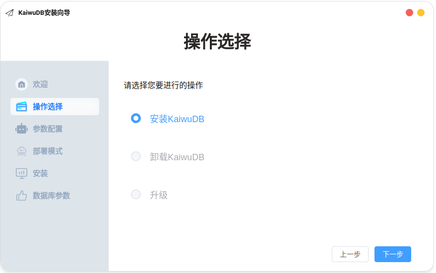 本节介绍如何使用可视化向导界面部署 KaiwuDB 集群。部署时,系统将对配置文件、运行环境、硬件配置和软件依赖进行检查。如果相应硬件未能满足要求,系统将继续安装,并提示硬件规格不满足要求。如果软件依赖未能满足要求,系统将中止安装,并提供相应的提示信息。