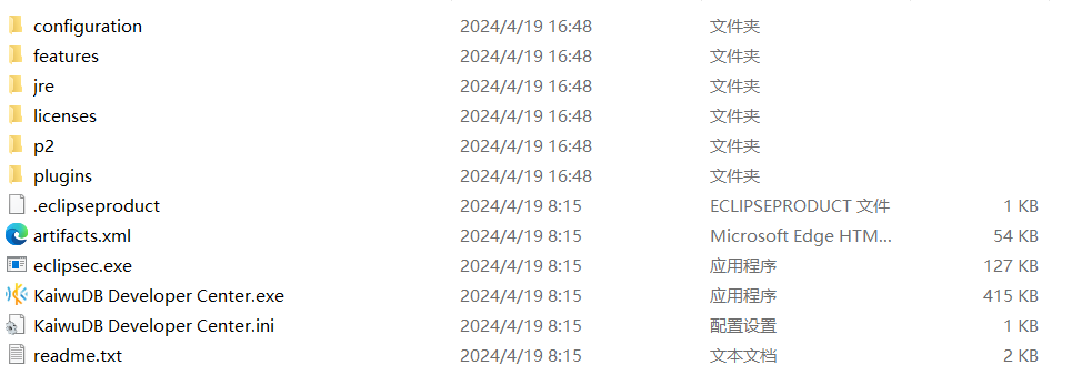 合并解压缩 KaiwuDB 开发者中心的所有安装包,文件目录如下: