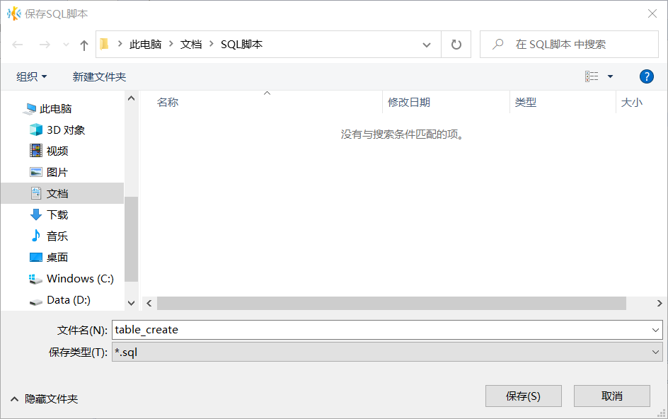 保存 SQL 脚本