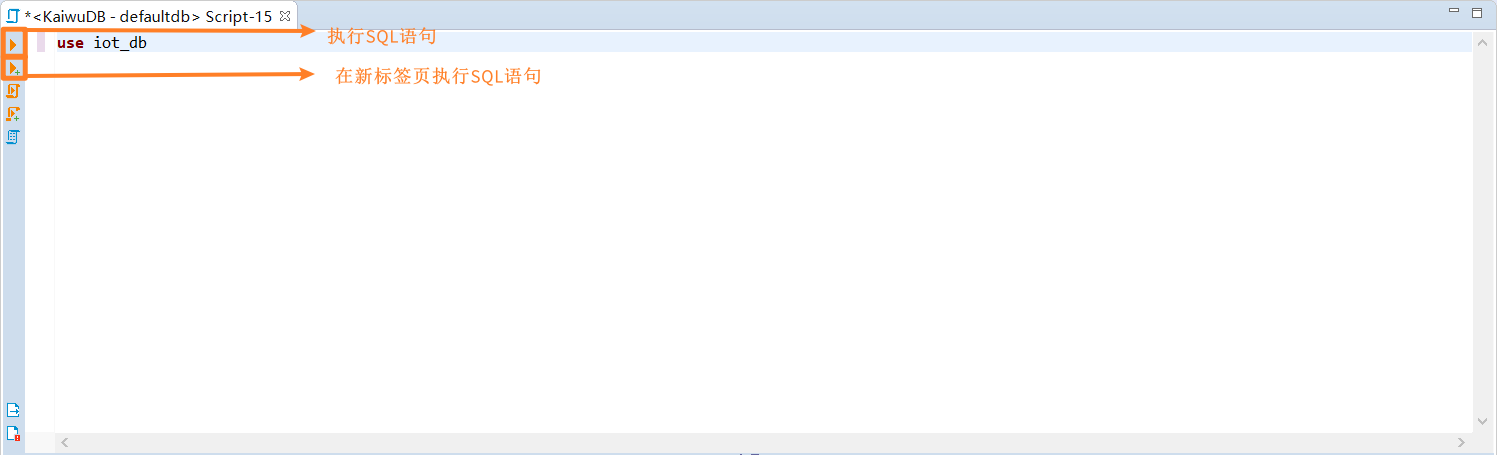 在 SQL 编辑器中输入 SQL 语句,单击左侧的执行 SQL 语句按钮或在新标签页中执行 SQL 语句按钮。