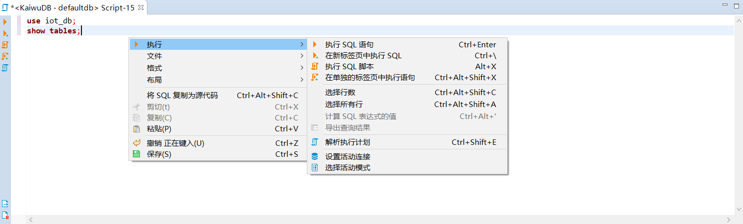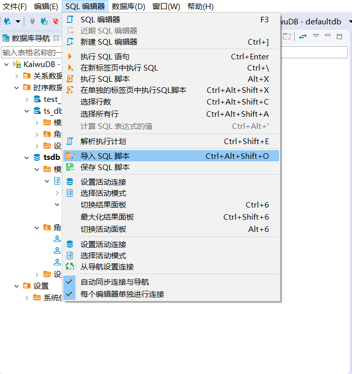 KaiwuDB 开发者中心支持使用 SQL 编辑器进行以下操作: