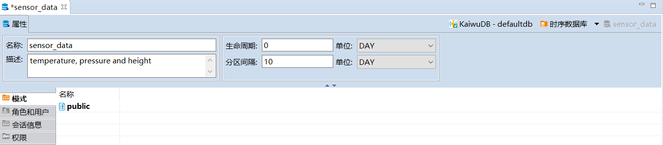 创建成功后,新建数据库将自动显示在数据库导航区内,继承 KaiwuDB 数据库系统的角色和用户设置。
