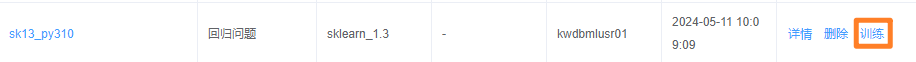 在流水线训练页面,单击目标训练流水线对应的训练选项。