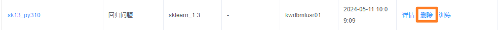 在流水线训练页面,单击目标训练流水线对应的删除选项。