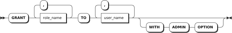 GRANT 语句用于为角色添加成员。成员继承角色的所有权限。如需为管理员角色添加成员,用户必须是具有 WITH ADMIN OPTION 权限的管理员角色。