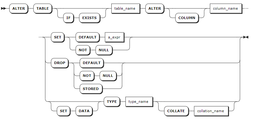 KaiwuDB 支持使用 ALTER TABLE ... ALTER COLUMN 语句执行以下操作。ALTER COLUMN 为在线操作,不会阻塞表中的数据读写。