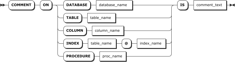 COMMENT ON 语句用于为数据库、表、列、索引、存储过程添加注释。
