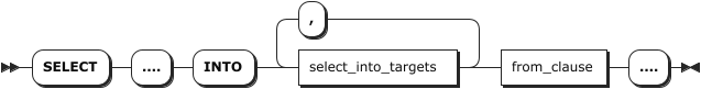 simple_select_into_clause | 简单查询语句,格式为 SELECT .... INTO select_into_targets from_clause ....。select_into_targets: 支持写入一个多个变量,包括自定义变量,各变量之间使用逗号(,)隔开。 |