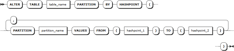 -- 为用户表创建按哈希值范围的分区 ALTER TABLE users PARTITION BY HASHPOINT ( PARTITION p_low VALUES FROM (0) TO (100), PARTITION p_medium VALUES FROM (100) TO (200), PARTITION p_high VALUES FROM (200) TO (300) );