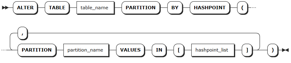 -- 为订单表创建按指定哈希值的分区 ALTER TABLE orders PARTITION BY HASHPOINT ( PARTITION p_region_1 VALUES IN [1, 3, 5, 7], PARTITION p_region_2 VALUES IN [2, 4, 6, 8], PARTITION p_region_3 VALUES IN [9, 10] );按指定哈希值范围分区
