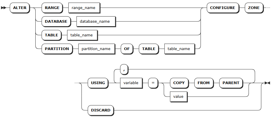 ALTER ... CONFIGURE ZONE 语句用于以下操作: