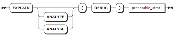 preparable_stmt | 需要进行 EXPLAIN ANALYZE 操作的语句。基本上,所有语句都可以和 EXPLAIN ANALYZE 组合使用,例如 CREATE、INSERT、UPDATE、DELETE 等。 |
