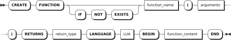 function_name | argument_types | return_type | function_type | language ------------------------+----------------+-------------+---------------+----------- calculate_growth_rate | INT, INT | DOUBLE | function | LUA (1 row)